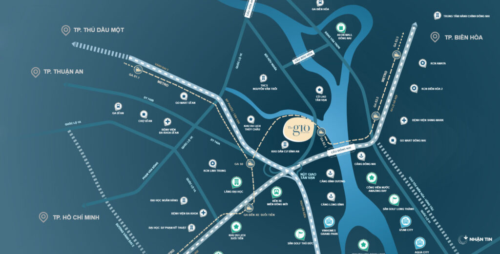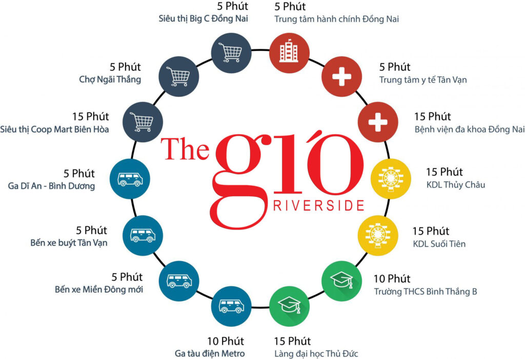 • 5 phút: Trung tâm hành chính Đồng Nai, Big C, Trung tâm y tế Tân Vạn, Chợ Ngãi Thắng, Bến xe Miền Đông mới, Ga Dĩ An.
