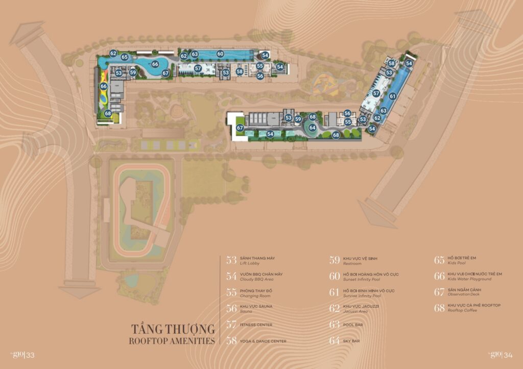 Công viên, hồ bơi, khu thể thao, nhà sinh hoạt cộng đồng, khu vui chơi giải trí, sky bar, sky lounge,..