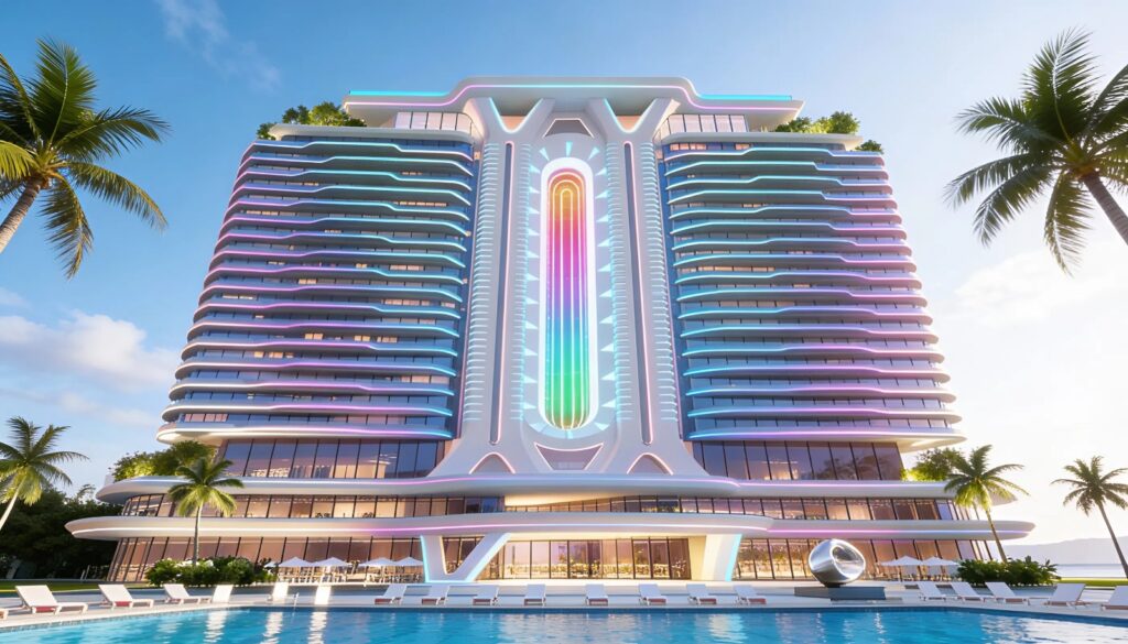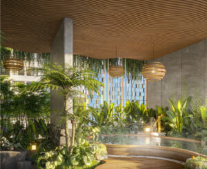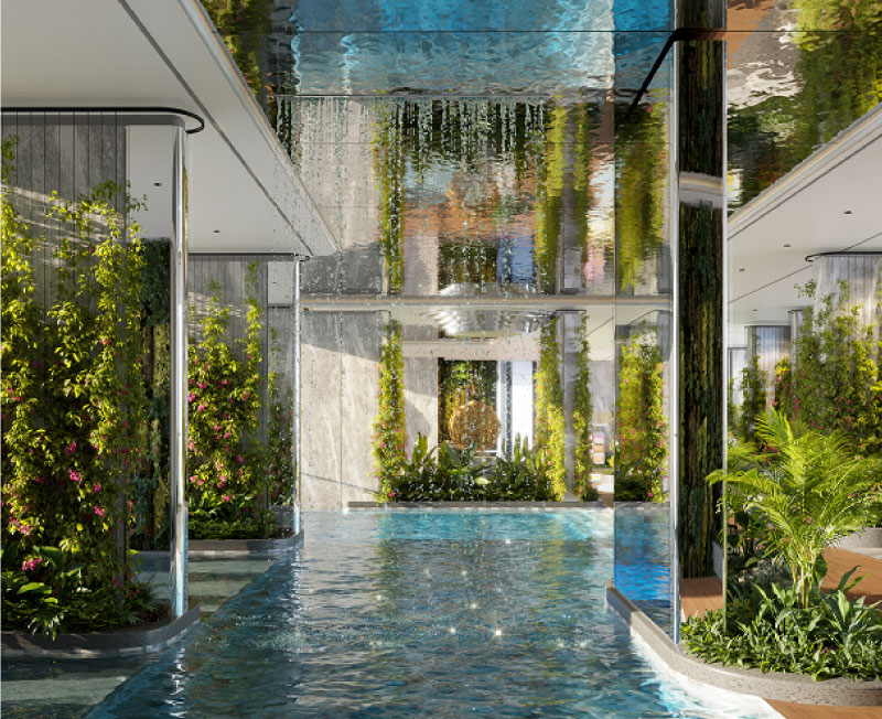 Dự án sở hữu sảnh đón tiêu chuẩn 5 sao sang trọng, hồ bơi vô cực, hồ bơi tự nhiên, quầy bar bên hồ bơi và khu lounge thư giãn. Đặc biệt, những quầy bar hướng biển là nơi lý tưởng để du khách thưởng thức cocktail, ngắm hoàng hôn và tận hưởng nhịp sống biển đầy thi vị.