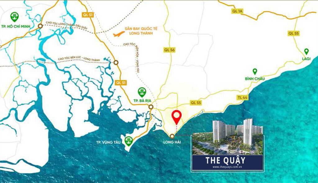 Tọa lạc ngay trung tâm Phước Hải, The Quậy sở hữu lợi thế kết nối trực tiếp tuyến TL44A và trục đường ven biển huyết mạch. Dự án chỉ cách TP.HCM, Biên Hòa, Bình Dương khoảng 80–100km, rất thuận tiện cho nhu cầu nghỉ dưỡng cuối tuần. Đặc biệt, khu vực đang hưởng lợi mạnh mẽ từ loạt hạ tầng trọng điểm như cao tốc Biên Hòa – Vũng Tàu, sân bay quốc tế Long Thành và kế hoạch mở rộng đường ven biển lên 6 làn xe. Những yếu tố này sẽ thúc đẩy dòng khách du lịch và nhà đầu tư đổ về, tạo nền tảng tăng giá bền vững trong tương lai.